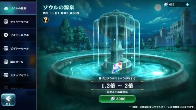 もし課金するなら、毎日ソウルストーンがもらえる「マナの定期便」や、お得なアイテムが詰まった「初心者応援パック」などがおすすめです。