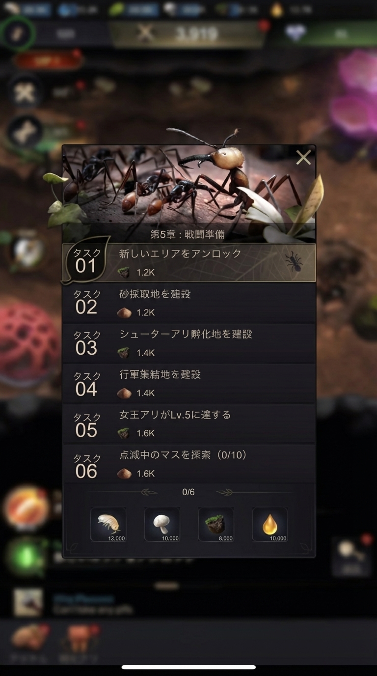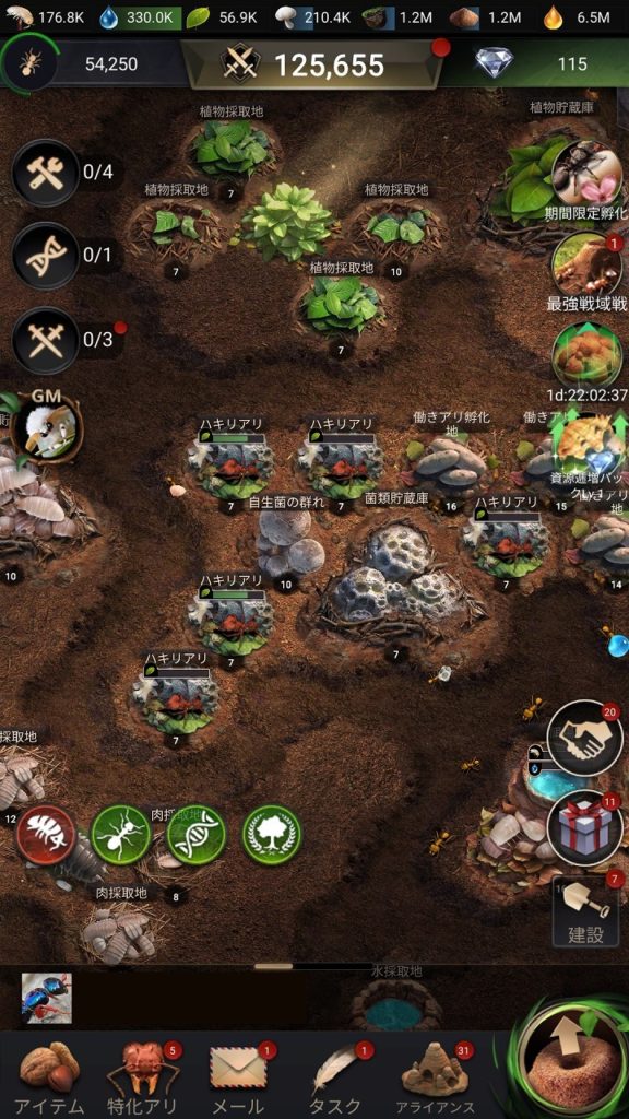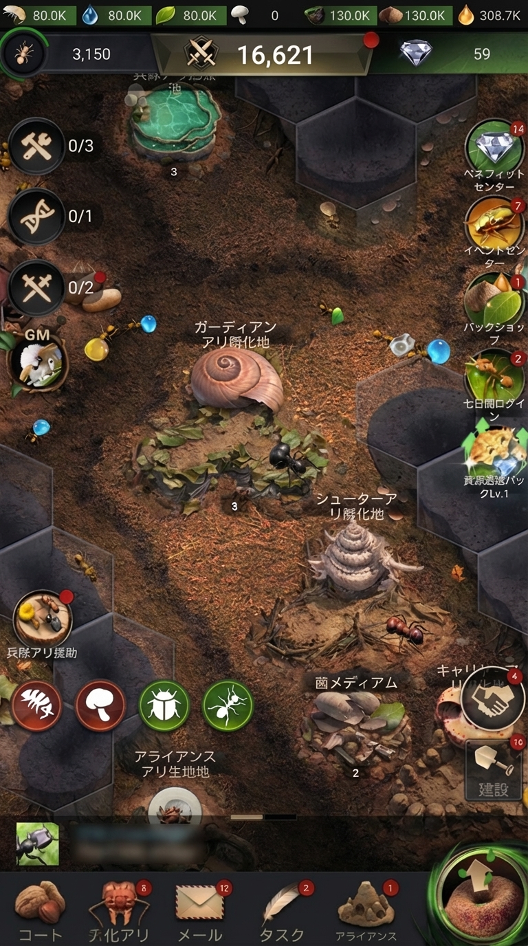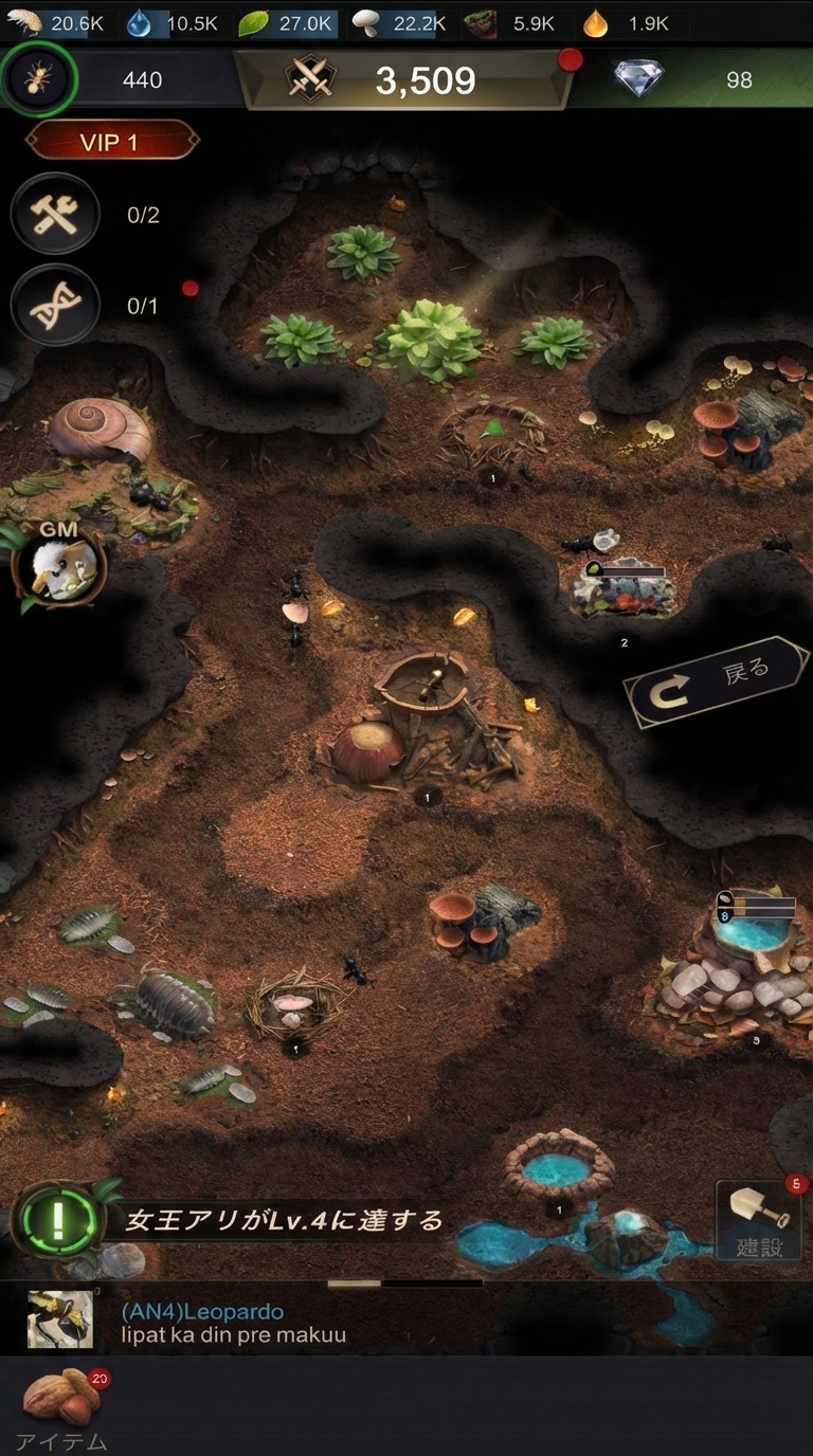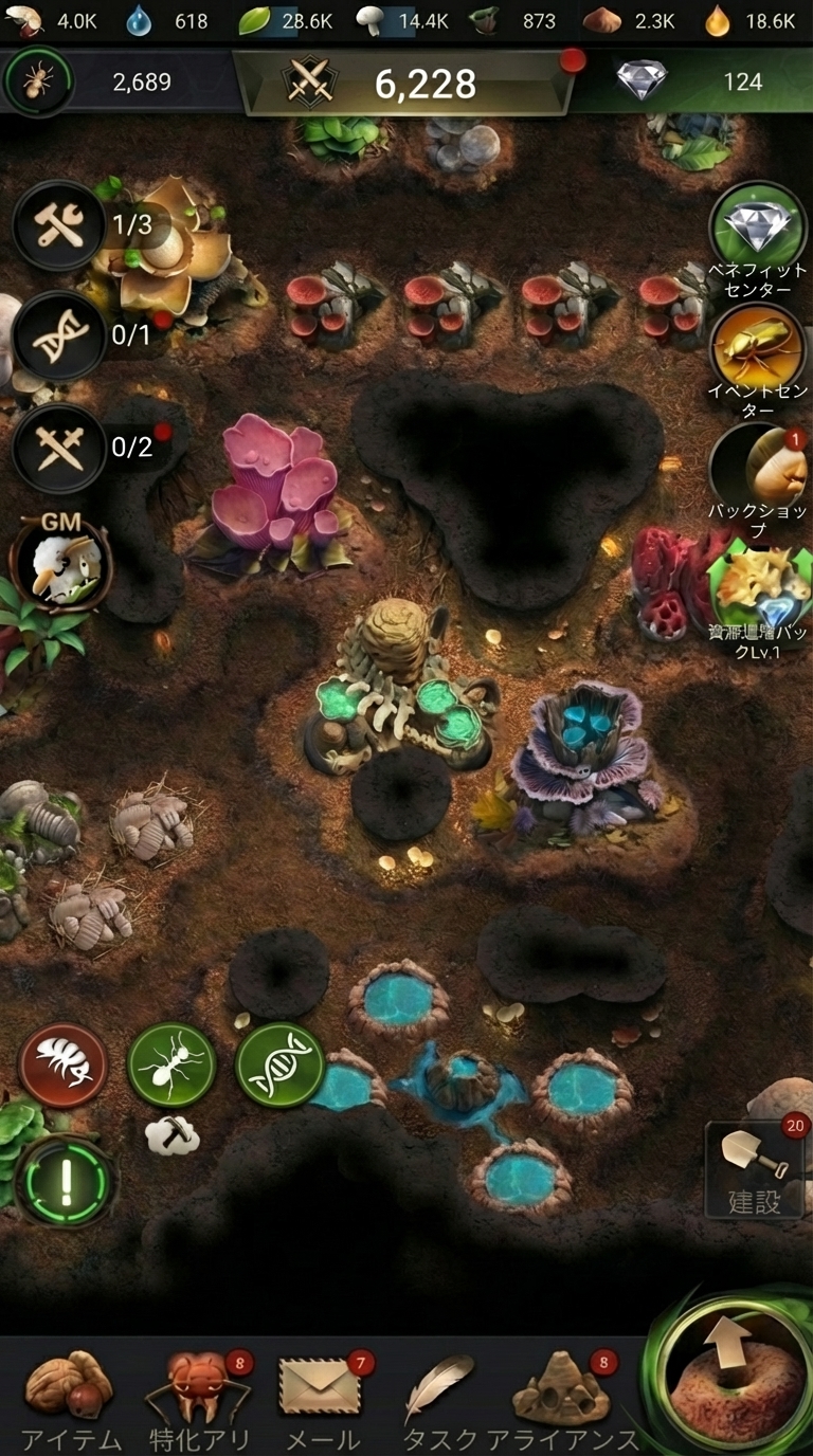 「資源を何に優先的に使うか」「どの施設からレベルアップするか」「特化蟻と兵隊アリの組み合わせはどうするか」など、あなたの采配一つでアリ塚の発展速度が大きく変わります。