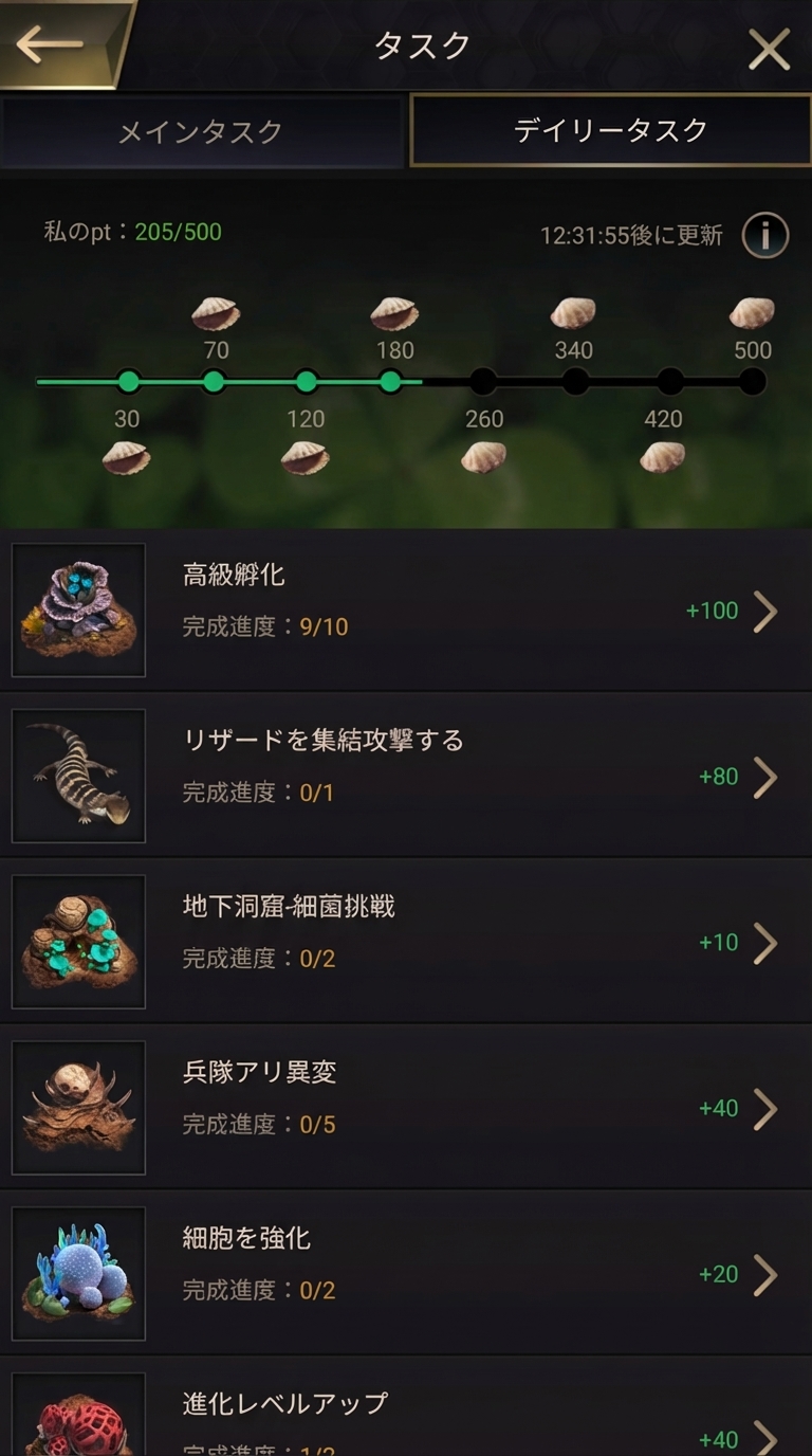 まずはアリ塚の拠点である「女王アリ」のレベルを上げることが最優先!女王アリのレベルに応じて、様々な施設がアンロックされていきます。