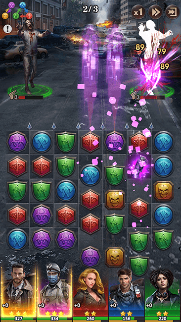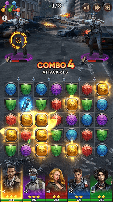 メインクエストやイベントでは、3マッチパズルでゾンビと戦います。