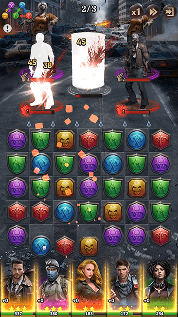 - パズルパート:3マッチパズルでゾンビと戦う!
